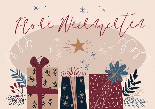 Passen Sie diese wunderschöne Einladungskarte zur Weihnachtsfeier mit Weihnachtgeschenken und fix gestaltetem Frohe Weihnachten Text. Text auf zweiter Seite anpassen, Logos und Images hinzufügen, personalisieren usw. Animierte virtuelle Einladungen verschicken mit Gästeverwaltung.