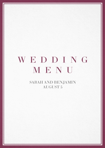 Classic Wedding Menu card with beautifully placed text and a wider red and rosa frame. Customize your Menu card and order the format of your choice.
