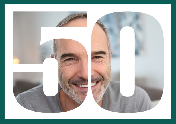 Customize this classic landscape photo card with cut out number 50. Upload your own photo and have it displayed inside the large 50. Add your own text and images and order paper cards or send online animated invitations with integrated guest management to your 50th Birthday and 50th Anniversary celebration.