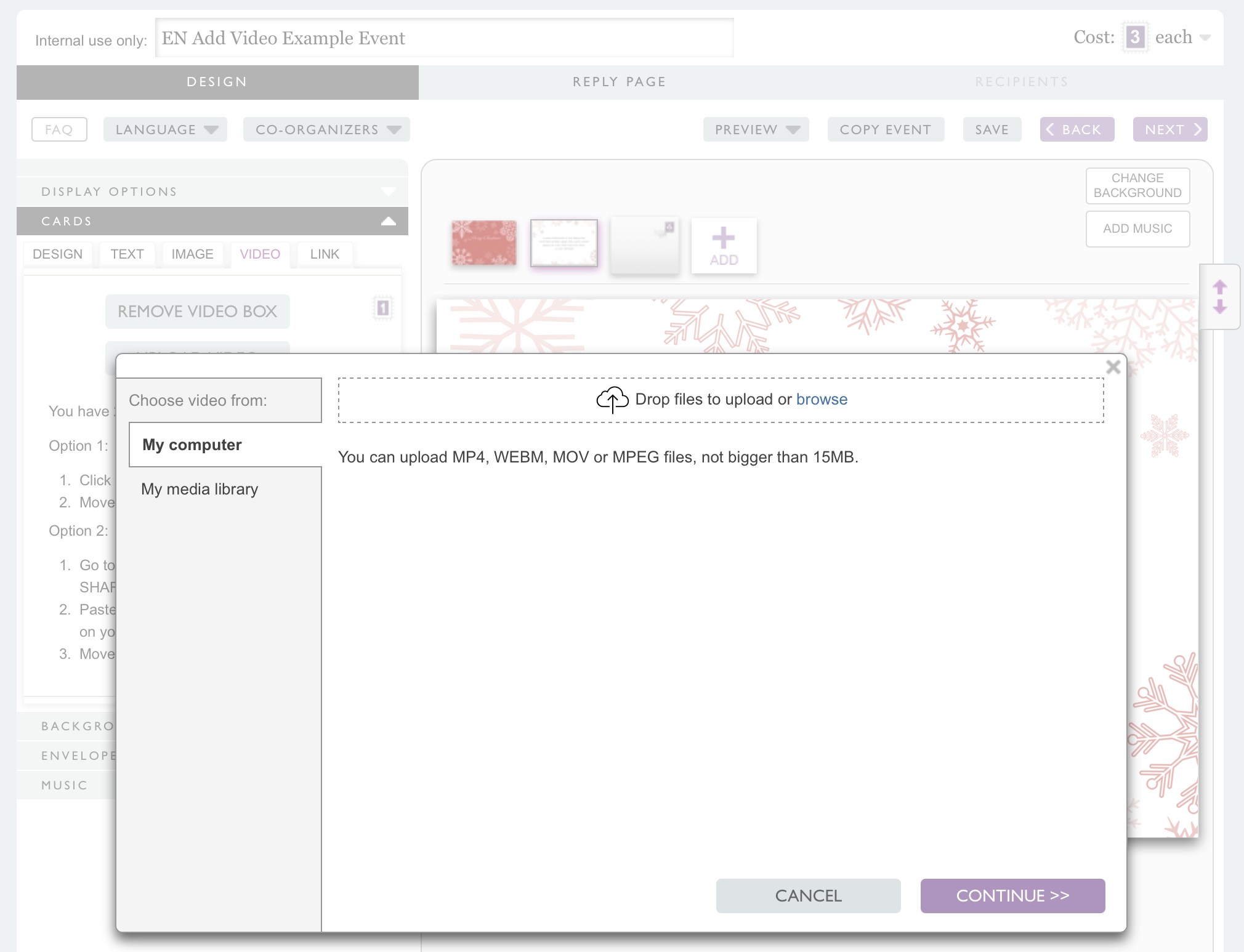 Spice up your Online Post by creating video cards. Add your own video content to any EventKingdom card.